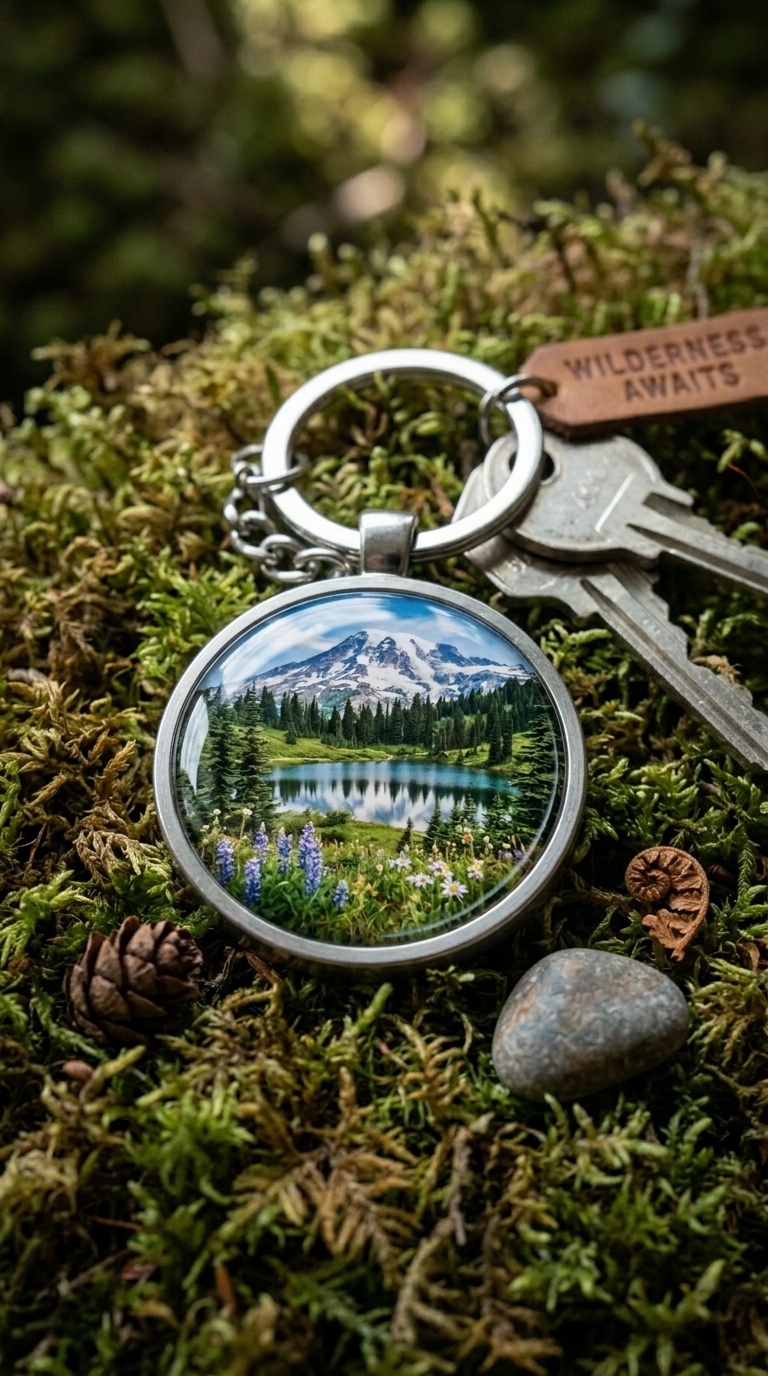 미지의 세계로 떠나는 설렘을 담은 키링입니다. 고요한 호수에 비친 웅장한 산과 푸른 들꽃이 신비로운 분위기를 자아냅니다. 영롱한 빛깔의 풍경 이미지가 시선을 사로잡습니다. 섬세한 그림체와 깊이감 있는 색감이 자연의 아름다움을 그대로 담았습니다. 일상에 지친 당신에게 자연 속 모험을 선물하세요. 캠핑, 등산 등 아웃도어 활동을 즐기는 분들께 완벽한 아이템입니다. "WILDERNESS AWAITS" 문구가 새겨진 가죽 참이 함께 제공됩니다. 이국적인 풍경 이미지가 당신의 소지품에 특별함을 더합니다. 어떤 소재로 제작되었나요? 튼튼한 금속 소재와 투명한 돔이 사용되어 오랫동안 아름다움을 유지합니다.