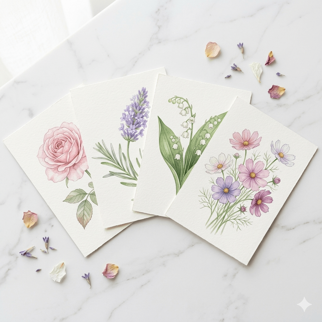 자연의 아름다움을 담은 보태니컬 엽서 세트입니다. 싱그러운 꽃과 식물들이 섬세한 수채화 터치로 그려졌습니다. 은은한 파스텔 톤의 색감이 편안하고 따뜻한 분위기를 자아냅니다. 장미, 라벤더, 은방울꽃, 코스모스 등 다채로운 식물 디자인이 매력적입니다. 일상의 소소한 순간을 기록하거나, 소중한 사람에게 마음을 전하는 메시지를 담기에 좋습니다. 책상이나 선반에 세워두어 인테리어 소품으로도 활용 가능합니다. 고품질 인쇄 기술로 원화의 감성을 그대로 담았습니다. 각 엽서마다 다른 아름다운 식물 그림을 만나볼 수 있습니다. 엽서 크기는 어떻게 되나요? 일반적인 엽서 규격으로 제작되어 휴대 및 보관이 용이합니다.