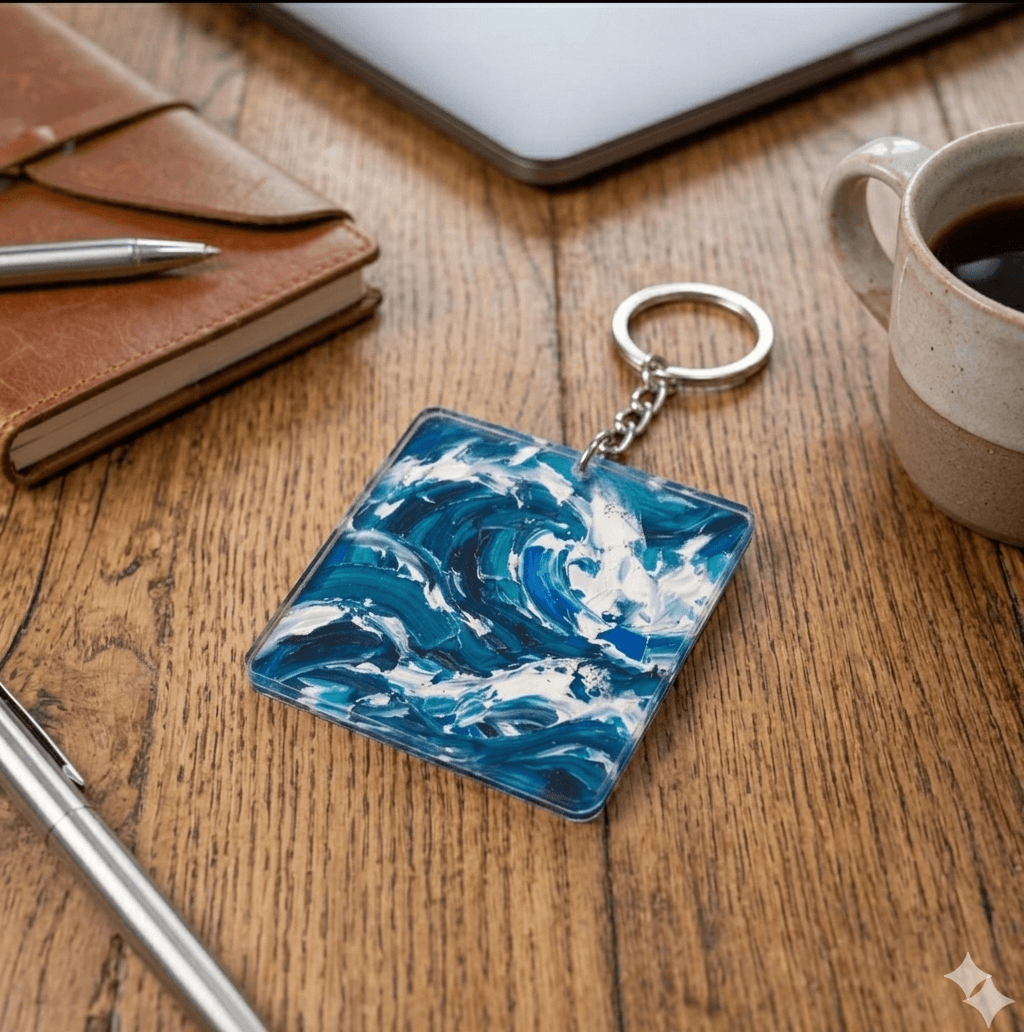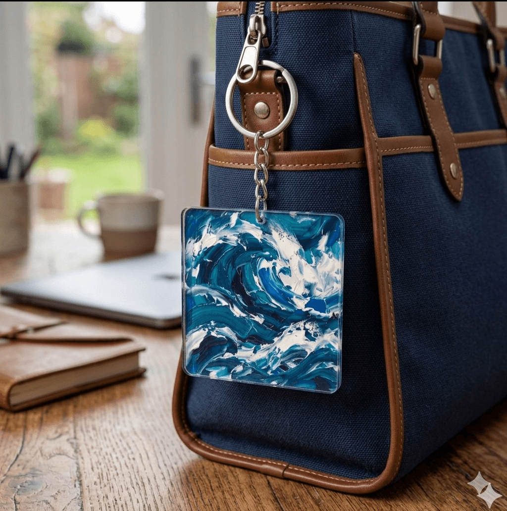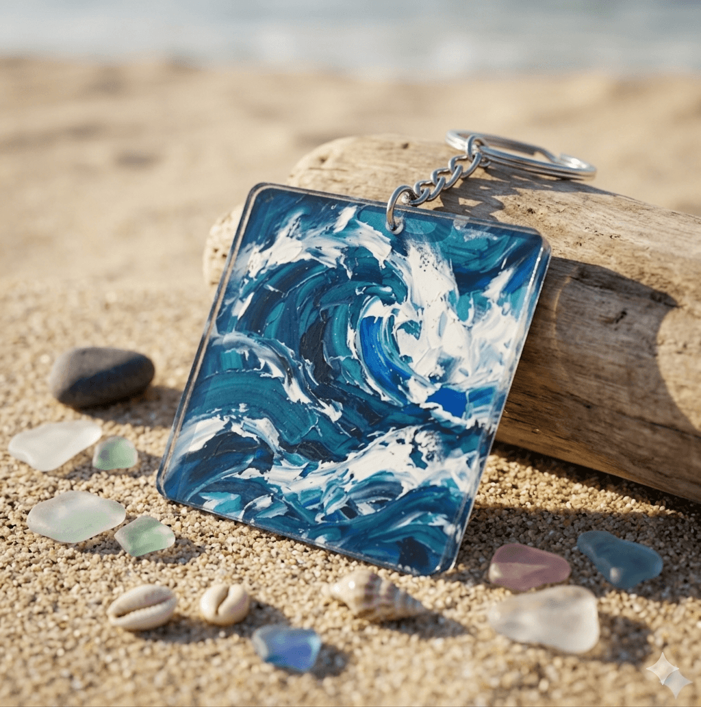 역동적인 바다의 아름다움을 담은 '오션 아크릴 키링'입니다. 거친 파도가 부딪히며 만들어내는 푸른빛의 향연을 느껴보세요. 짙은 남색, 에메랄드빛 청록색, 그리고 시원한 흰색이 어우러져 실제 바다를 옮겨놓은 듯한 생동감을 선사합니다. 두껍고 입체적인 붓 터치 표현이 돋보이며, 아크릴 소재 특유의 투명함과 광택이 작품의 깊이를 더합니다. 가방, 파우치, 열쇠 등에 달아 나만의 개성을 표현하기 좋습니다. 바다를 사랑하는 분, 시원하고 청량한 디자인을 선호하는 분께 특별한 선물이 될 것입니다. 키링 하나로 일상에 예술적 감성을 더해보세요. 투명 아크릴 소재로 제작되어 가벼우면서도 견고합니다. 어떤 소지품에도 자연스럽게 어울리는 만능 아이템입니다.